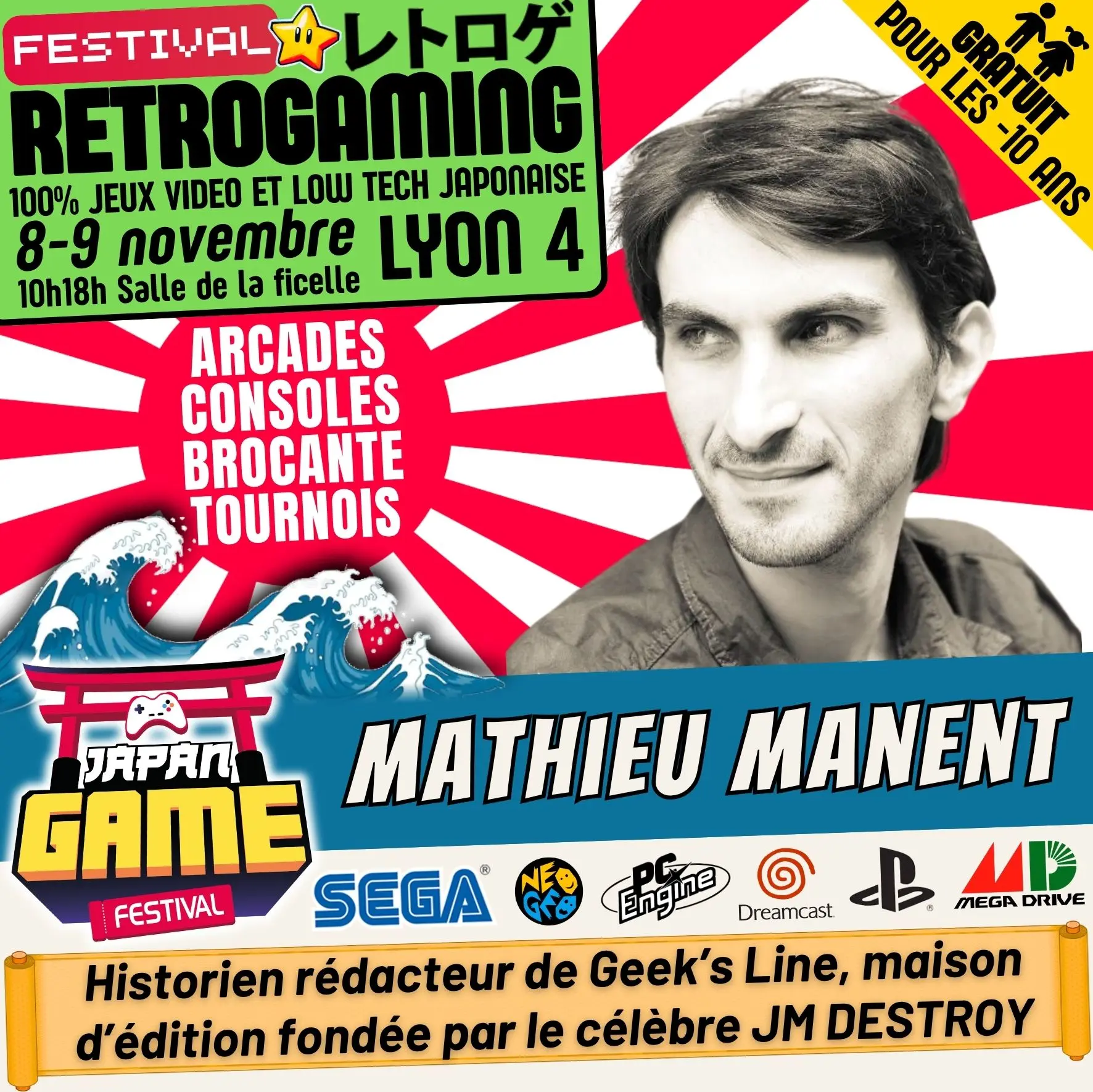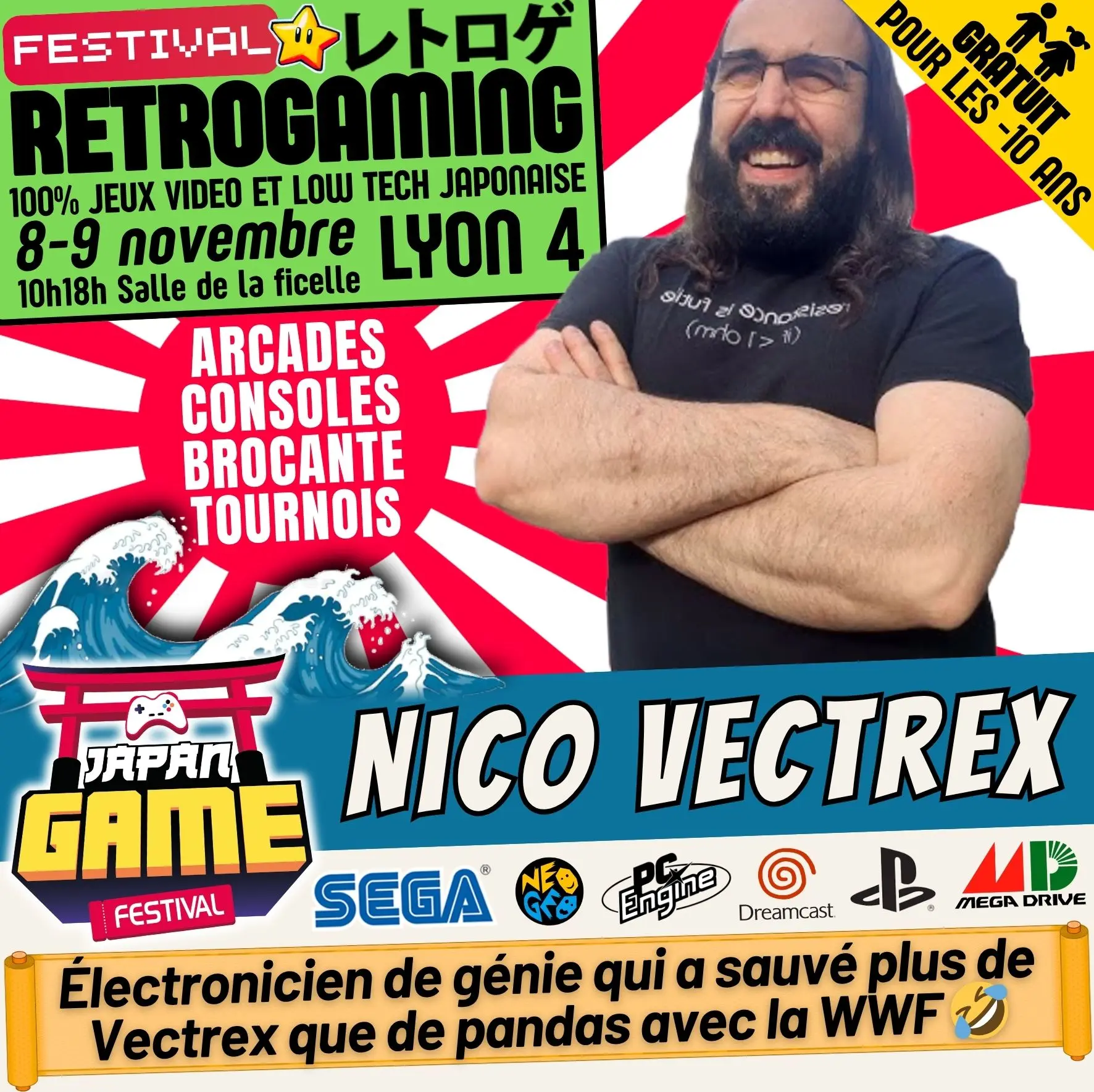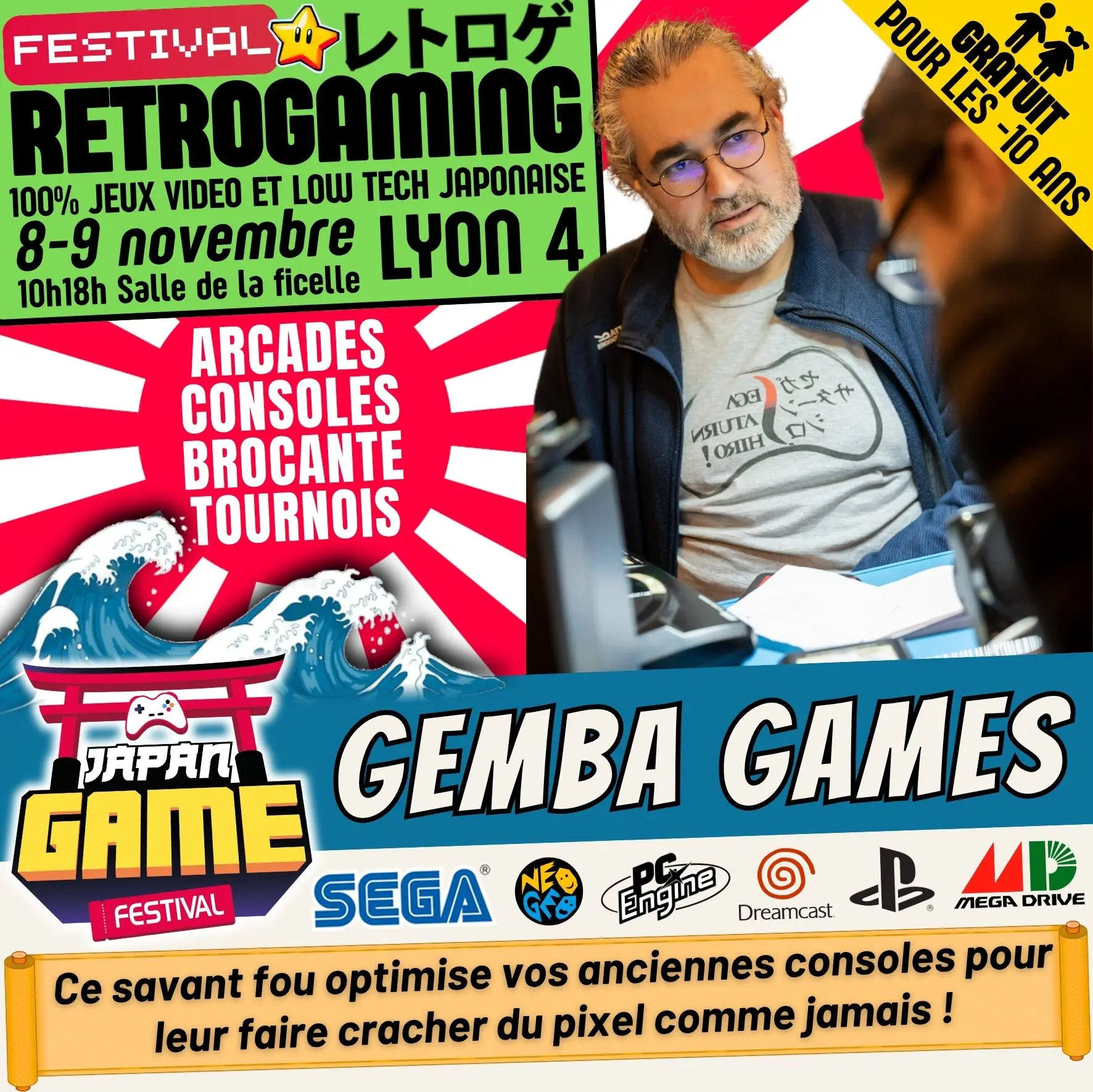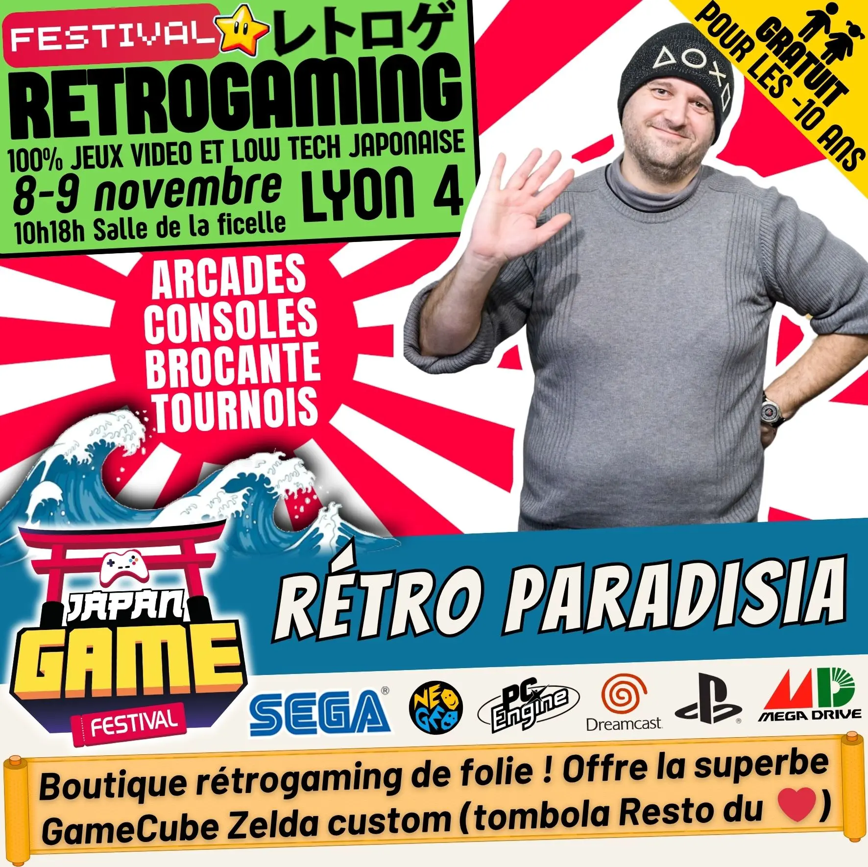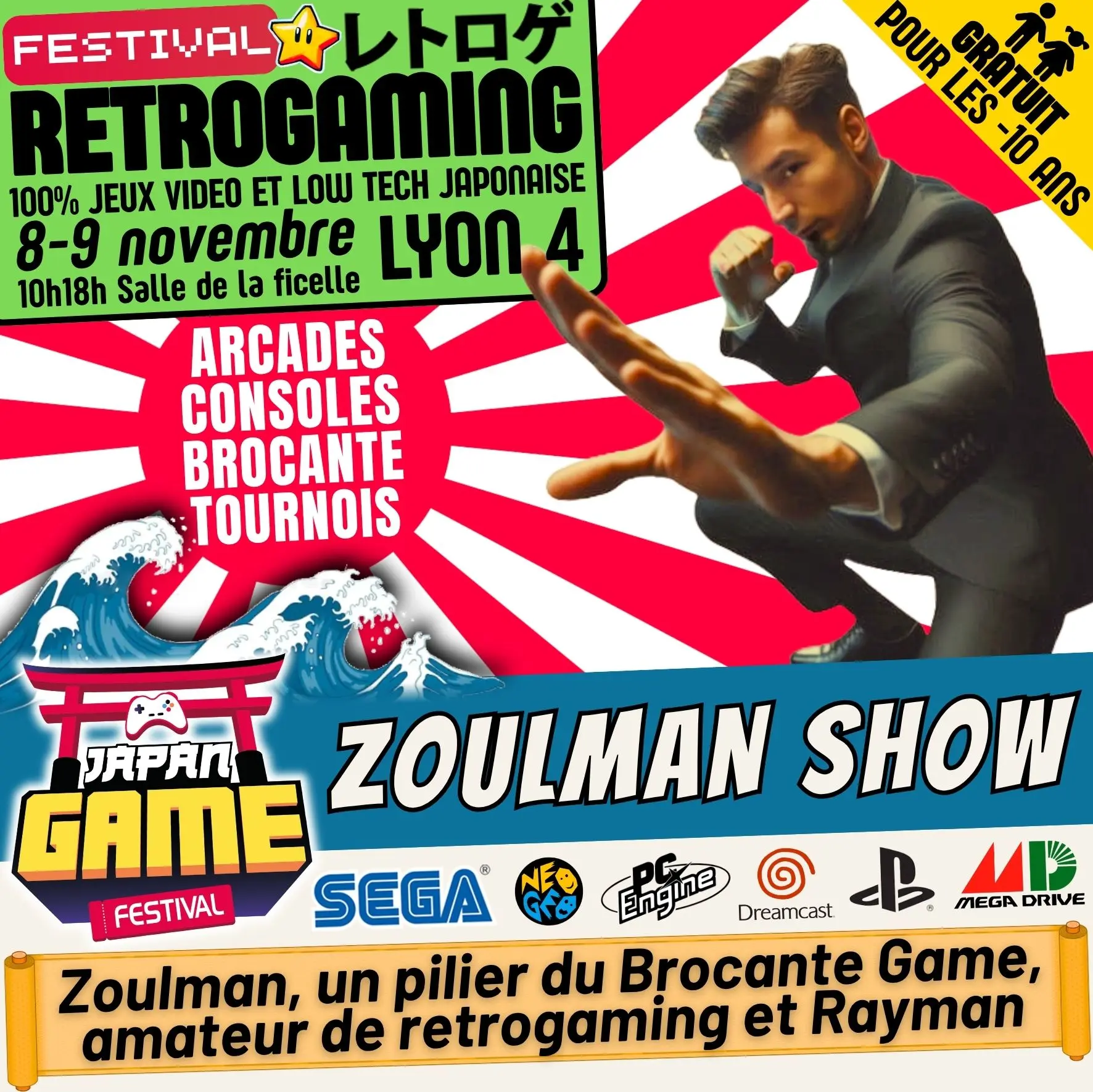 Samedi 10h - 18h // Dimanche 10h - 18h. salle de la ficelle (Lyon4)100% CONSOLE ET ARCADE JAP des 80'/90'/2000 "Entrez dans un véritable musée du jeu vidéo intégralement jouable !"