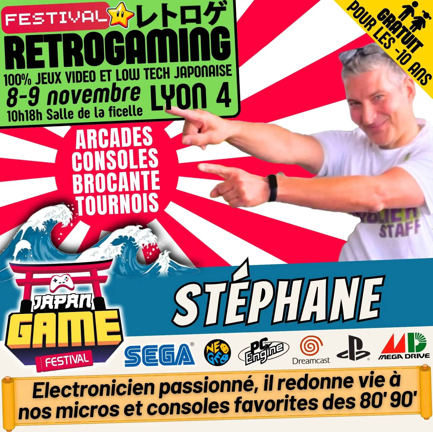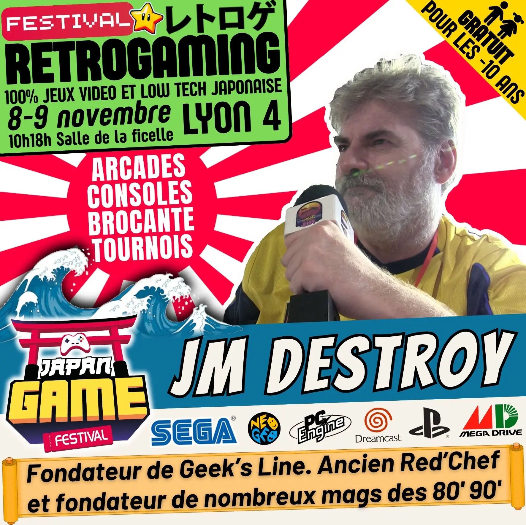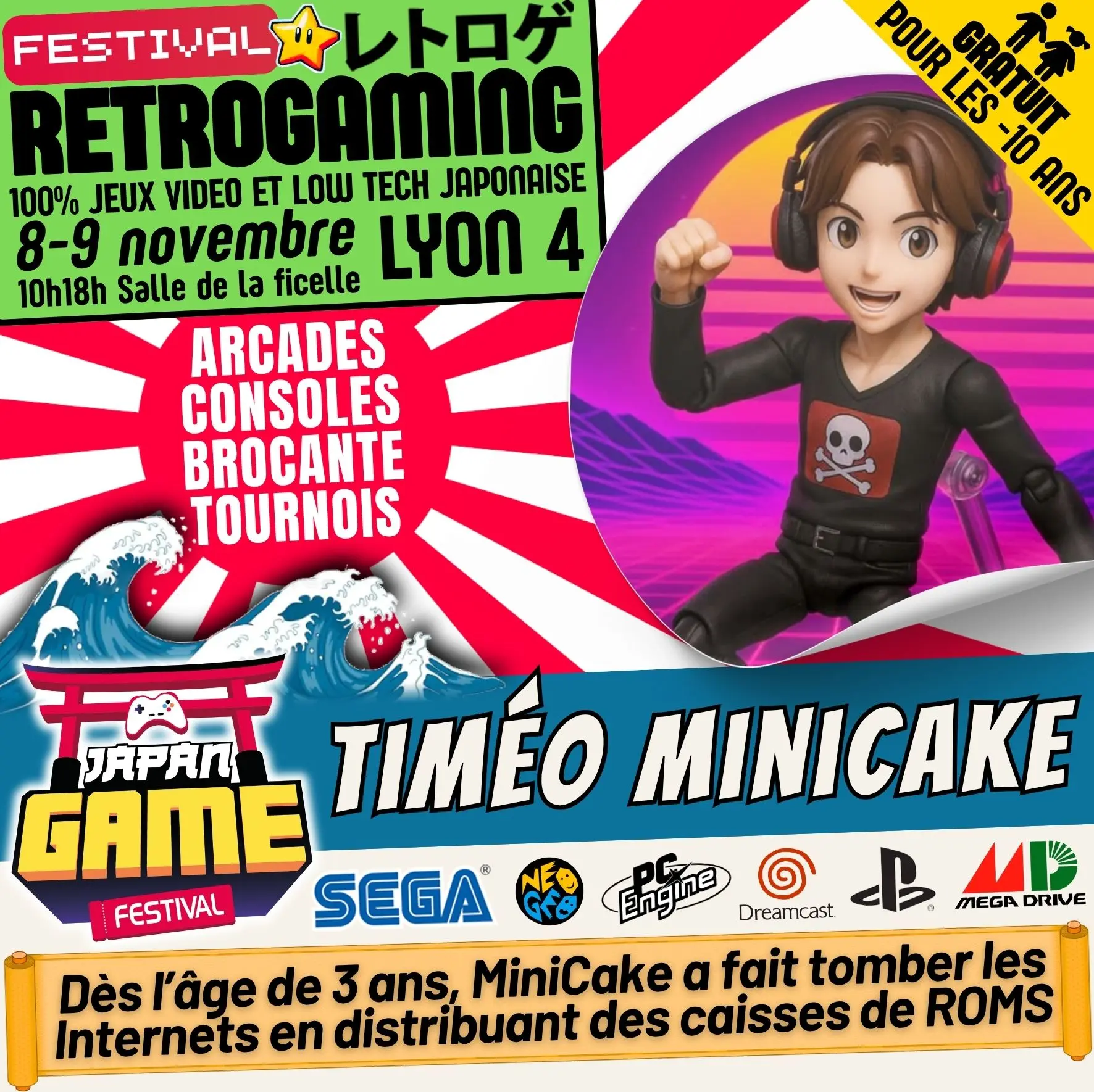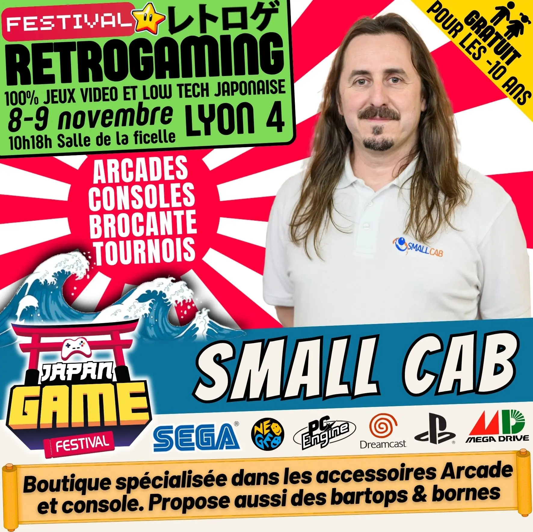 Samedi 10h - 18h // Dimanche 10h - 18h. salle de la ficelle (Lyon4)100% CONSOLE ET ARCADE JAP des 80'/90'/2000 "Entrez dans un véritable musée du jeu vidéo intégralement jouable !"