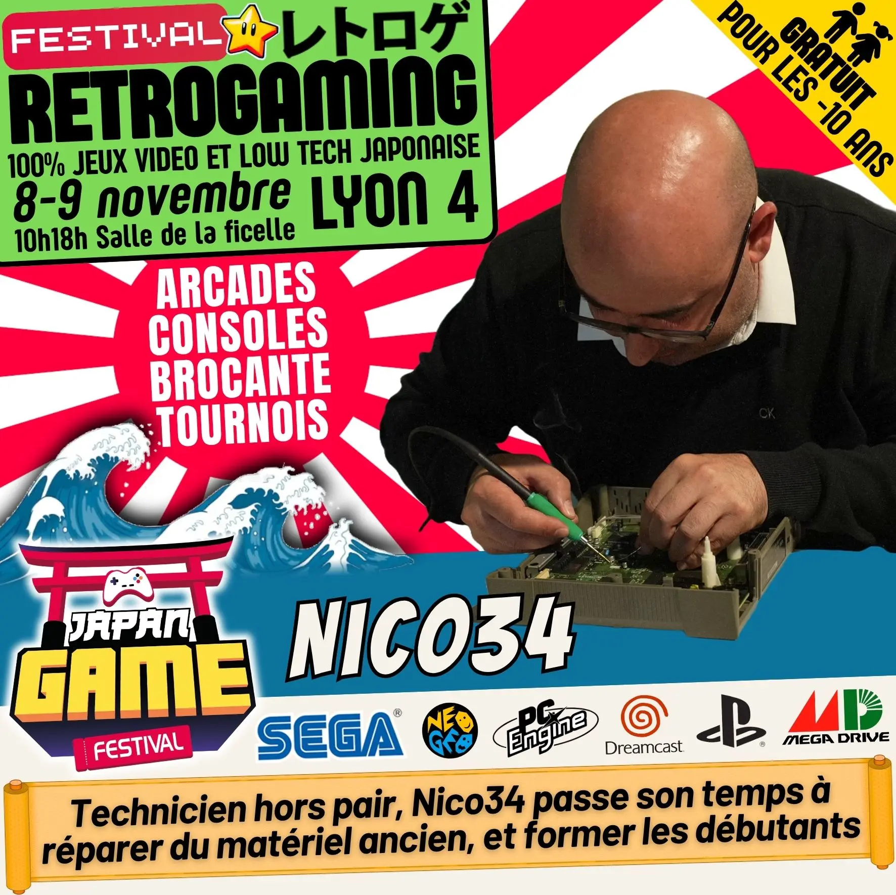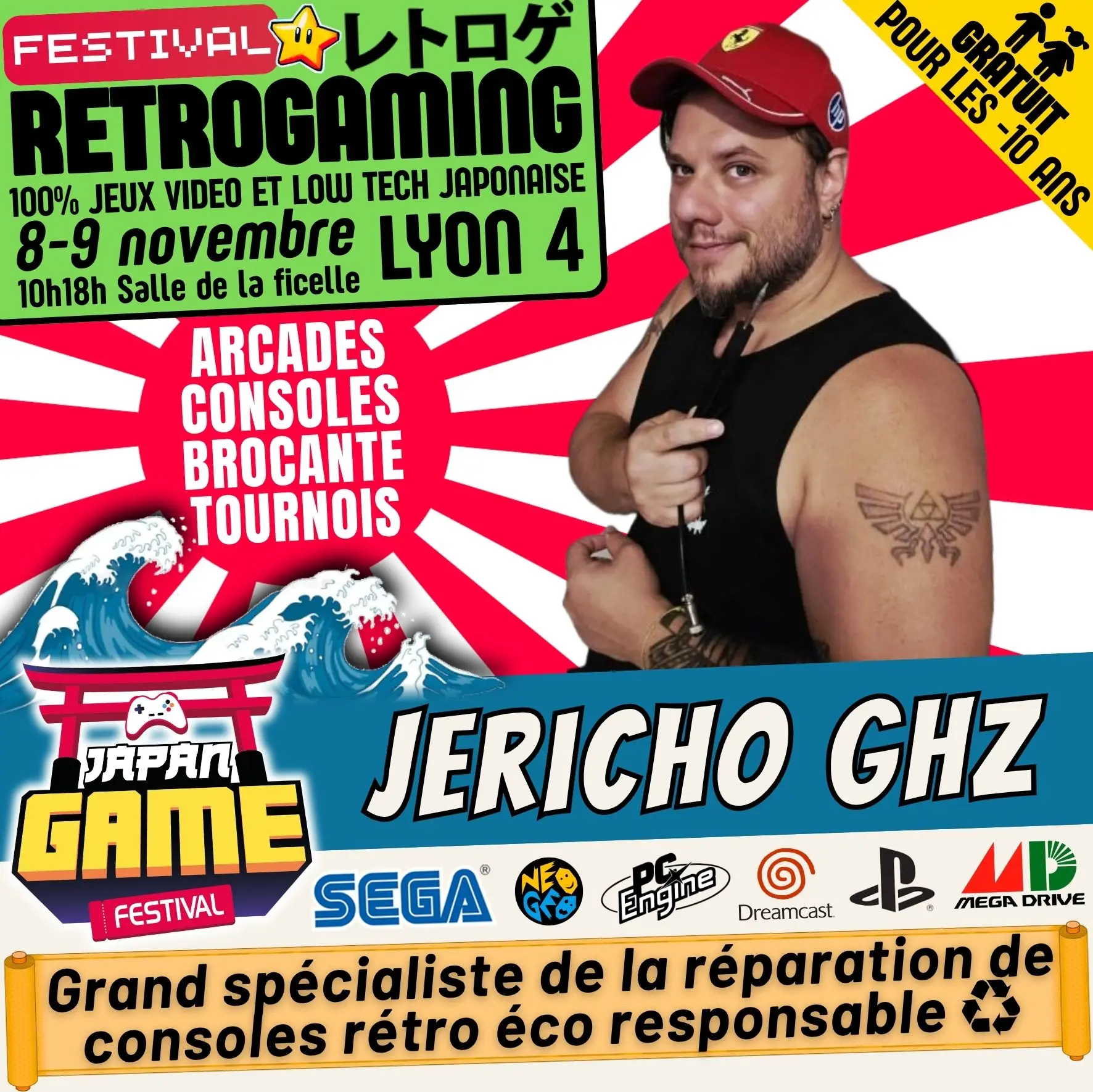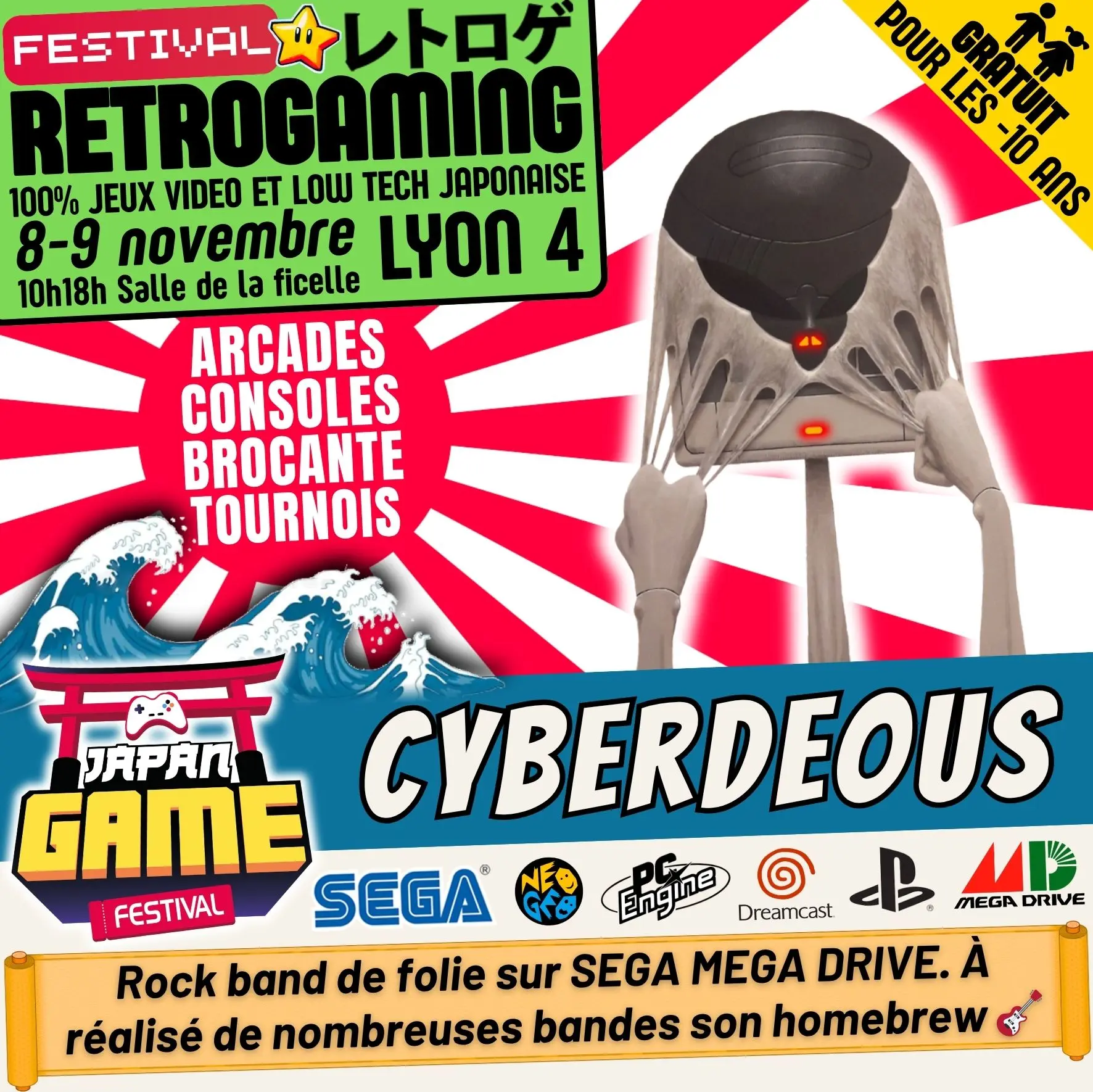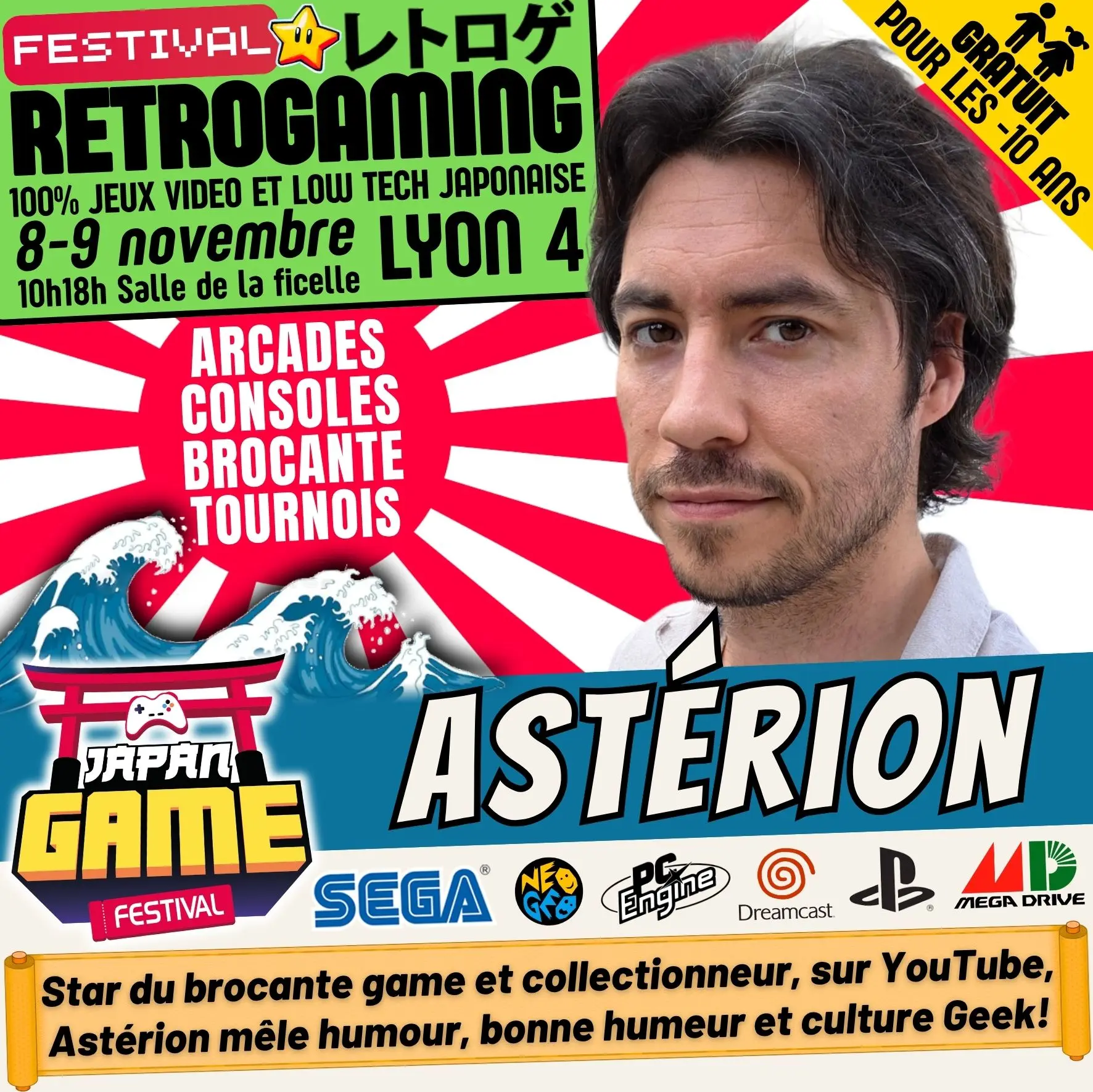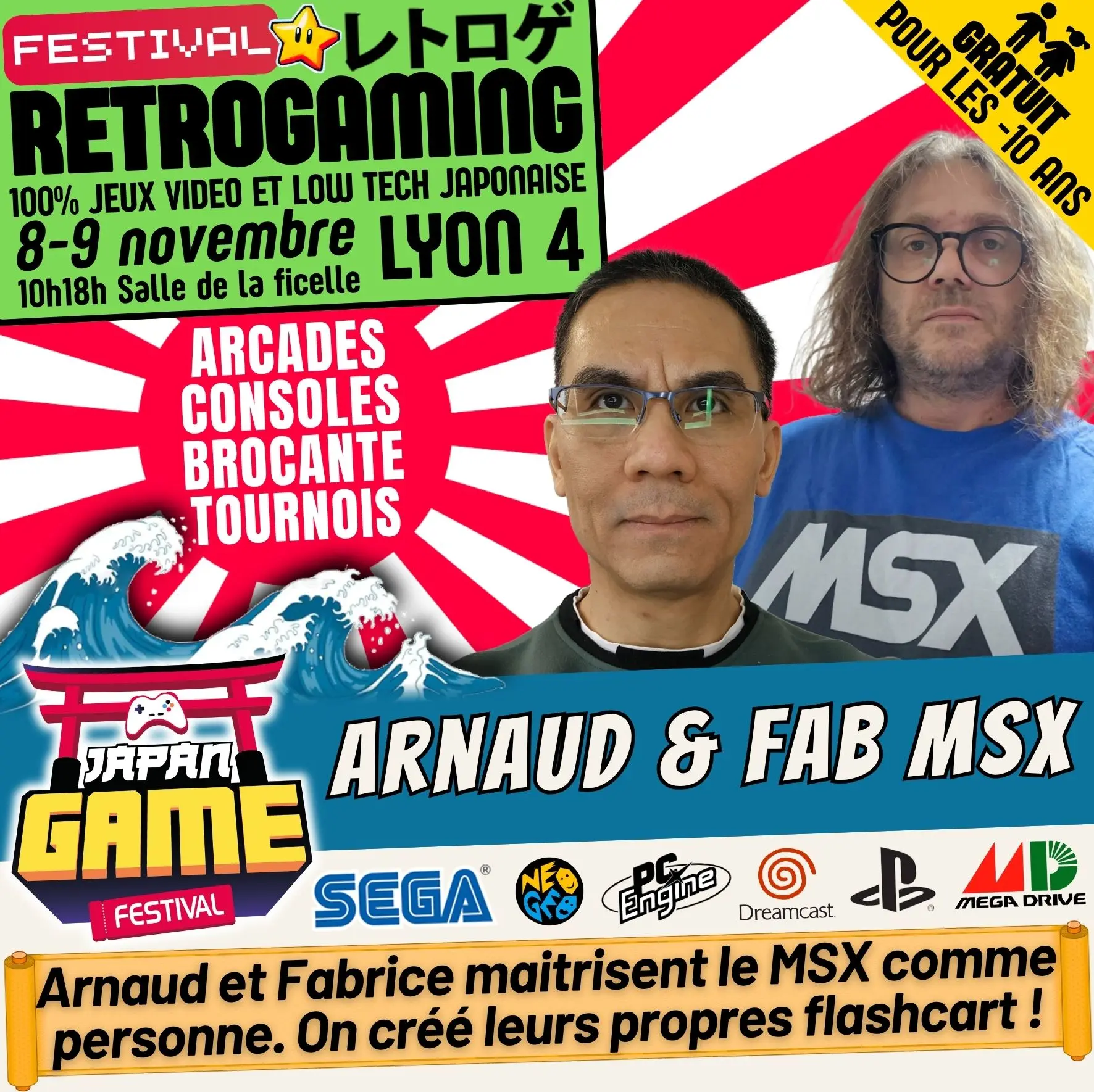 Samedi 10h - 18h // Dimanche 10h - 18h. salle de la ficelle (Lyon4)100% CONSOLE ET ARCADE JAP des 80'/90'/2000 "Entrez dans un véritable musée du jeu vidéo intégralement jouable !"