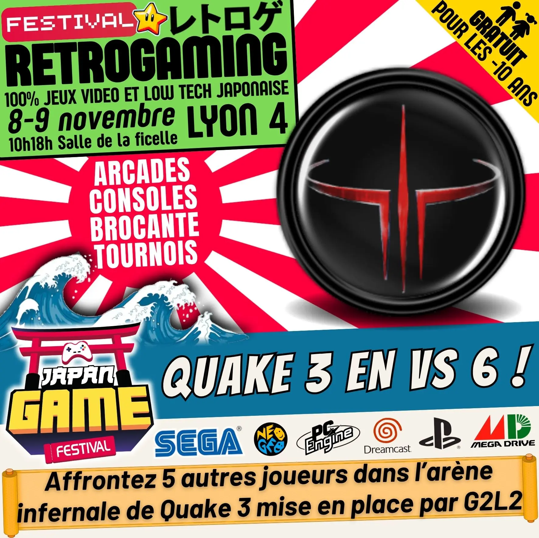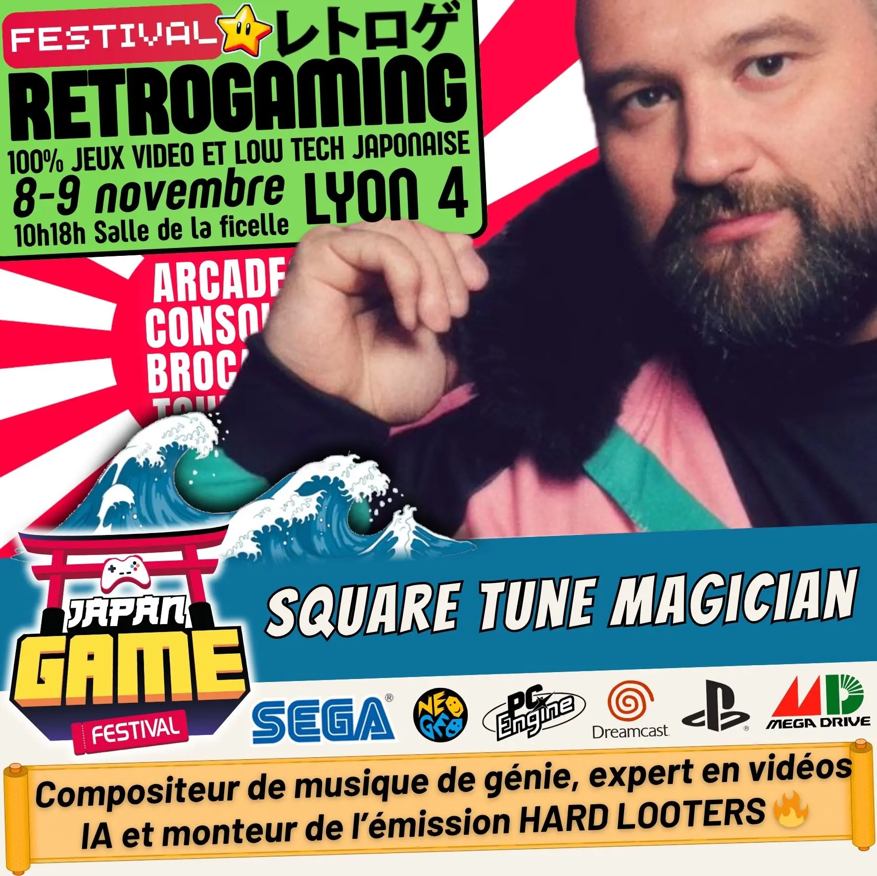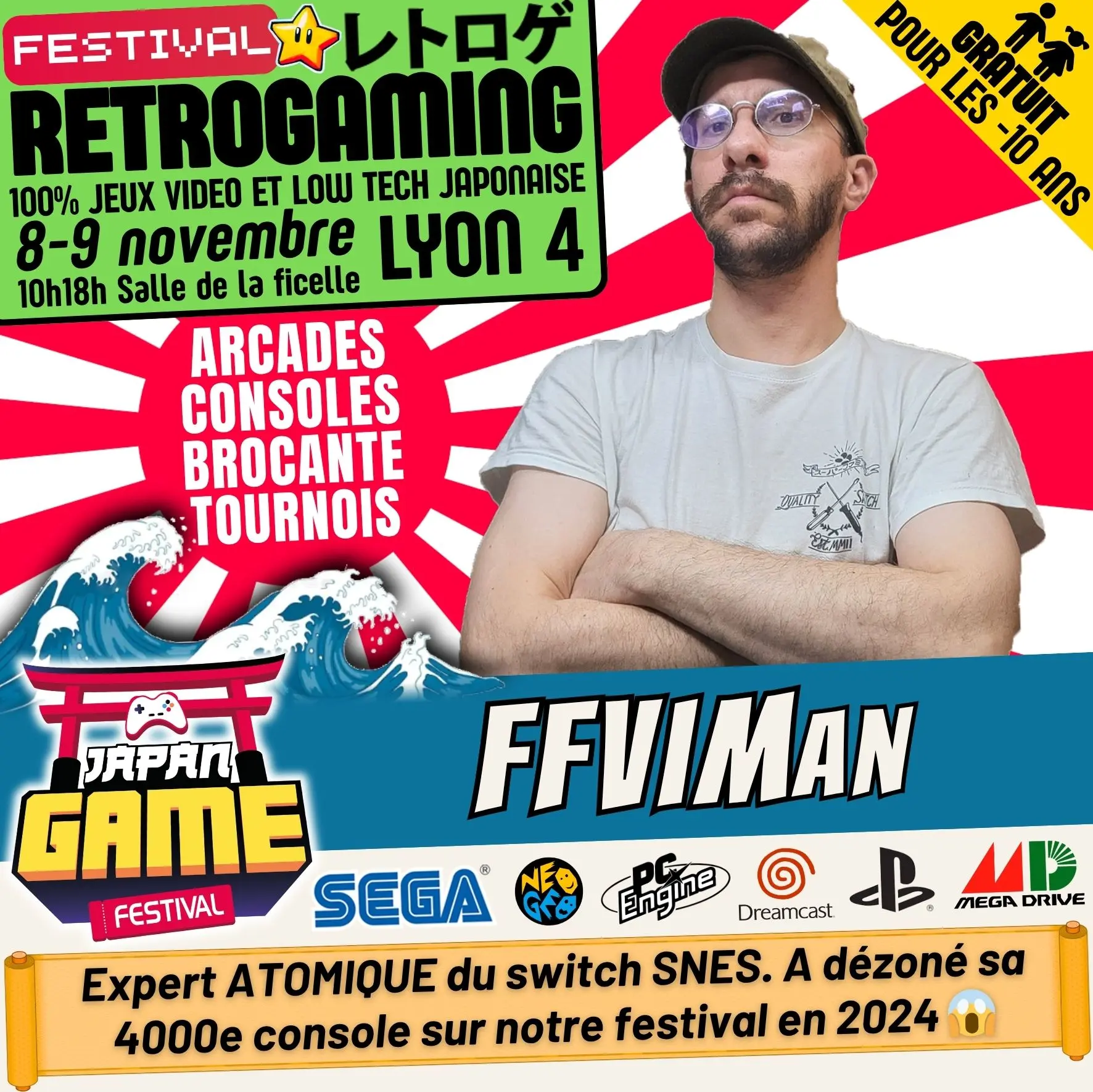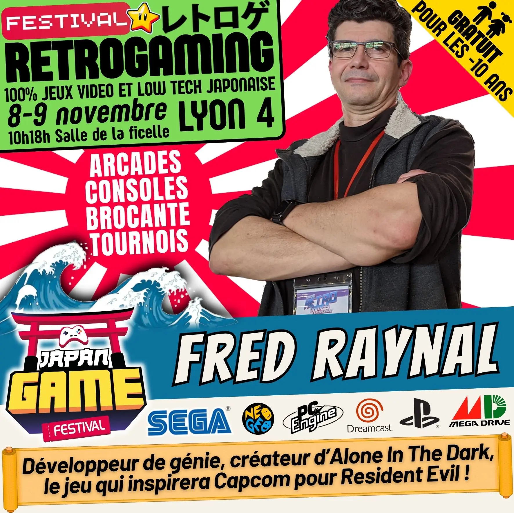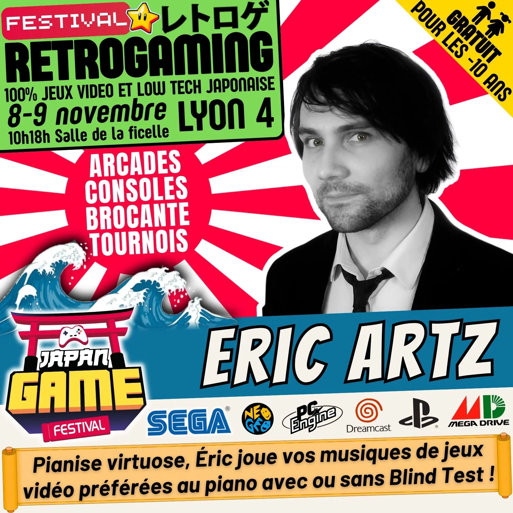Samedi 10h - 18h // Dimanche 10h - 18h. salle de la ficelle (Lyon4)100% CONSOLE ET ARCADE JAP des 80'/90'/2000 "Entrez dans un véritable musée du jeu vidéo intégralement jouable !"