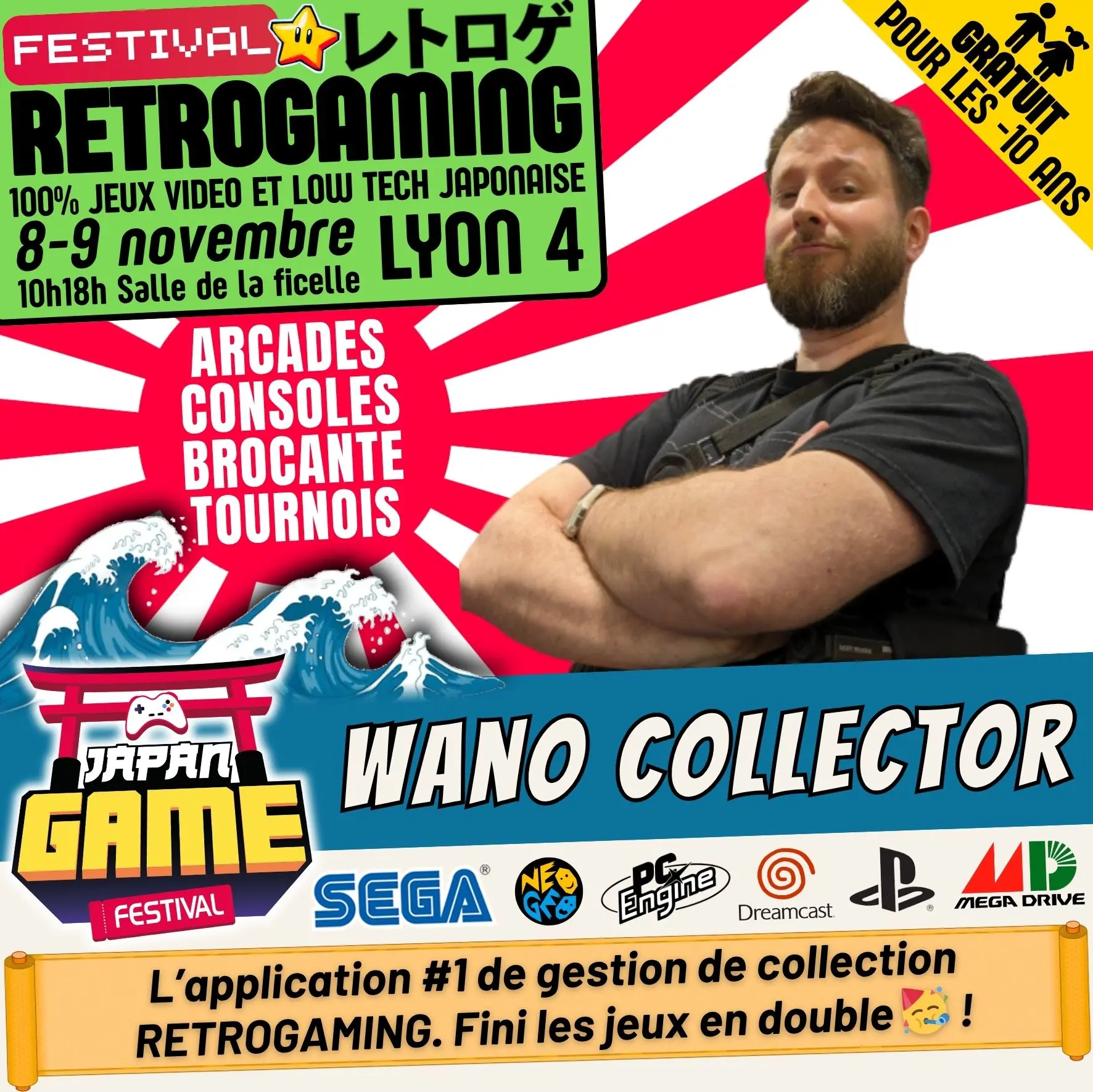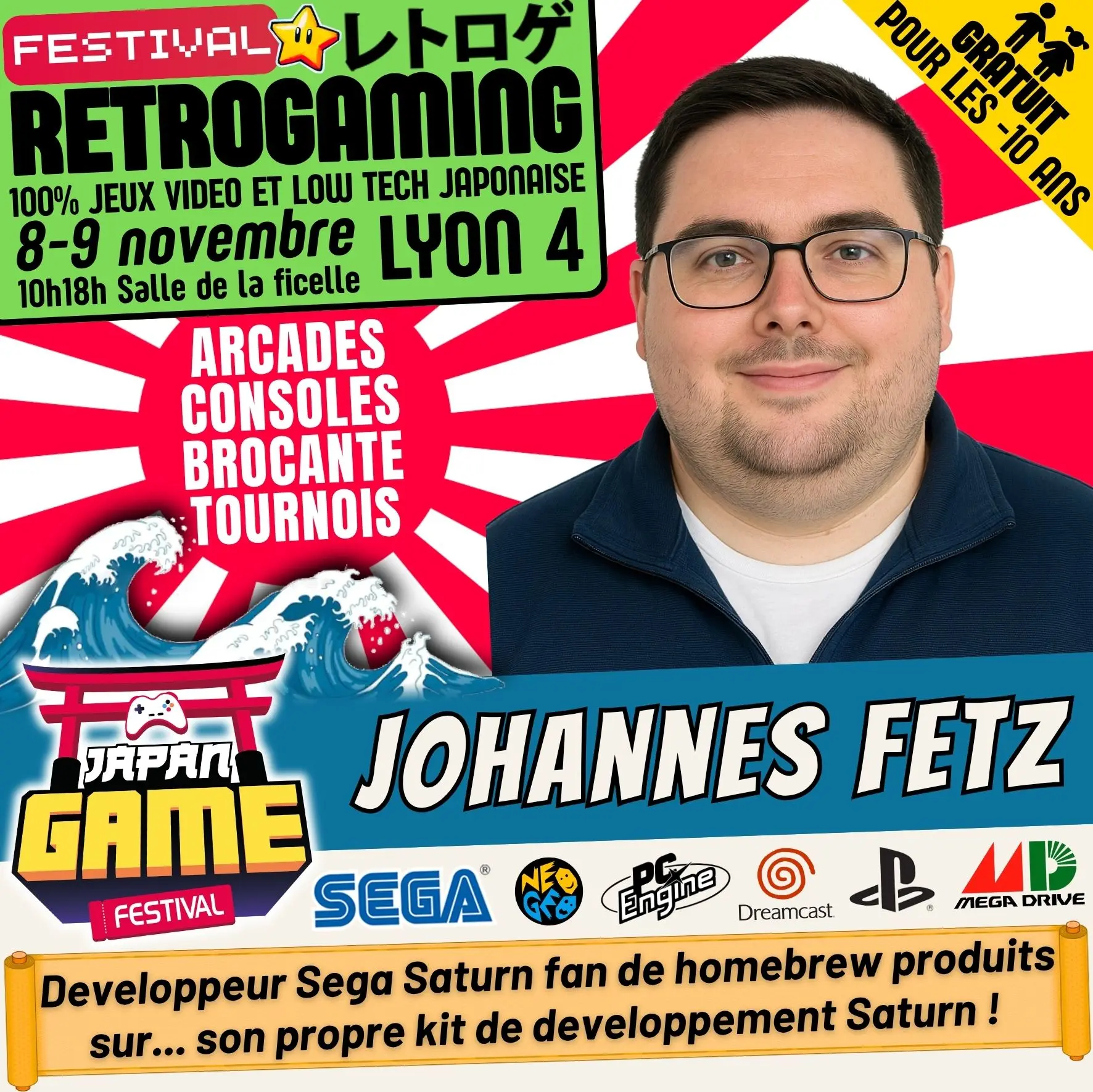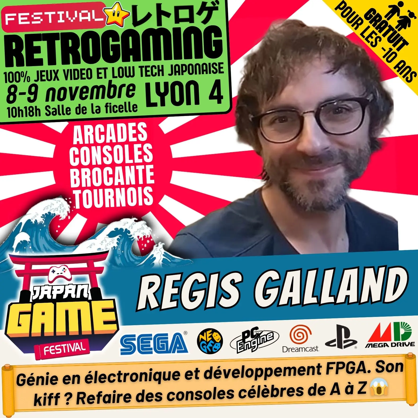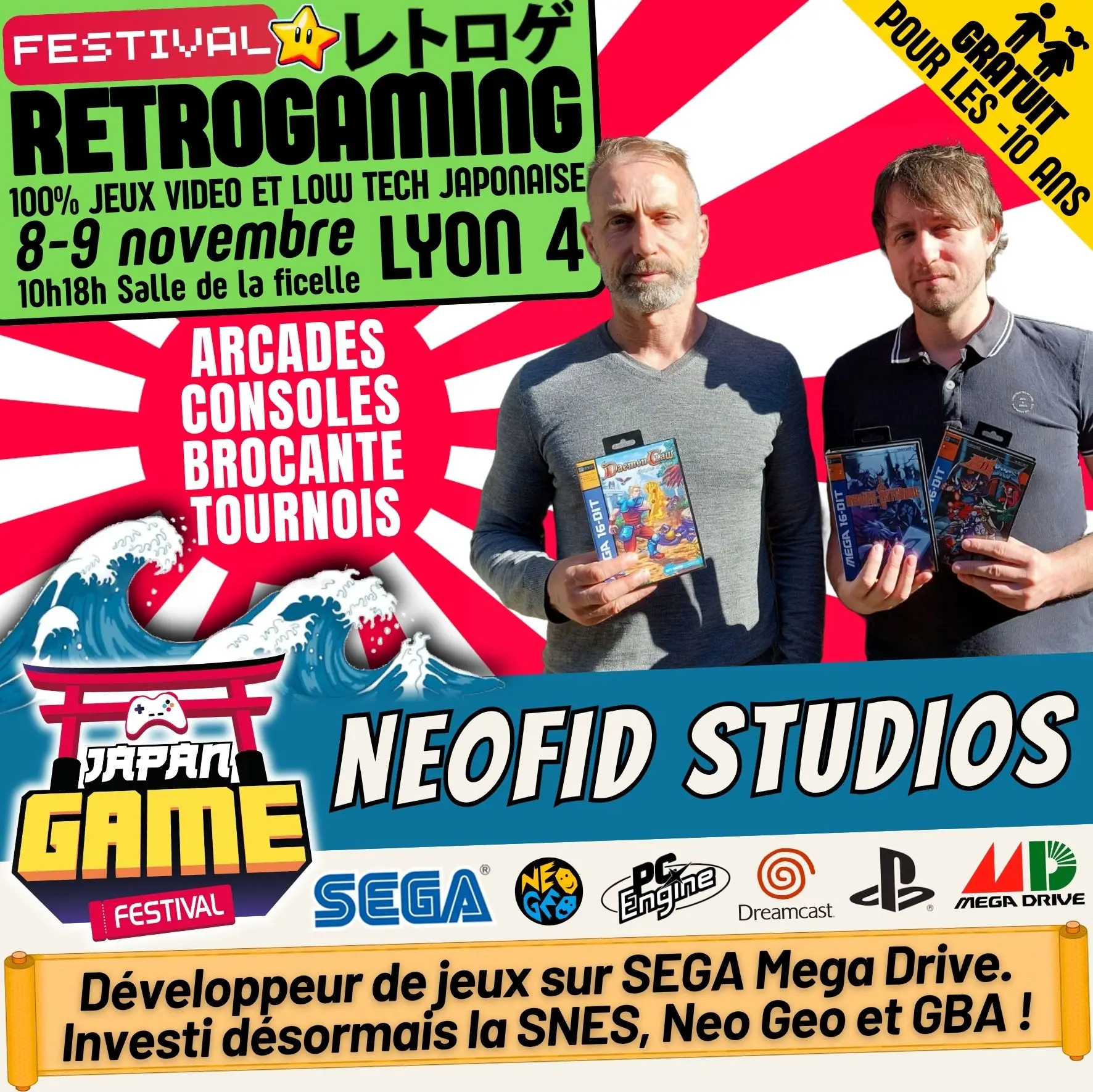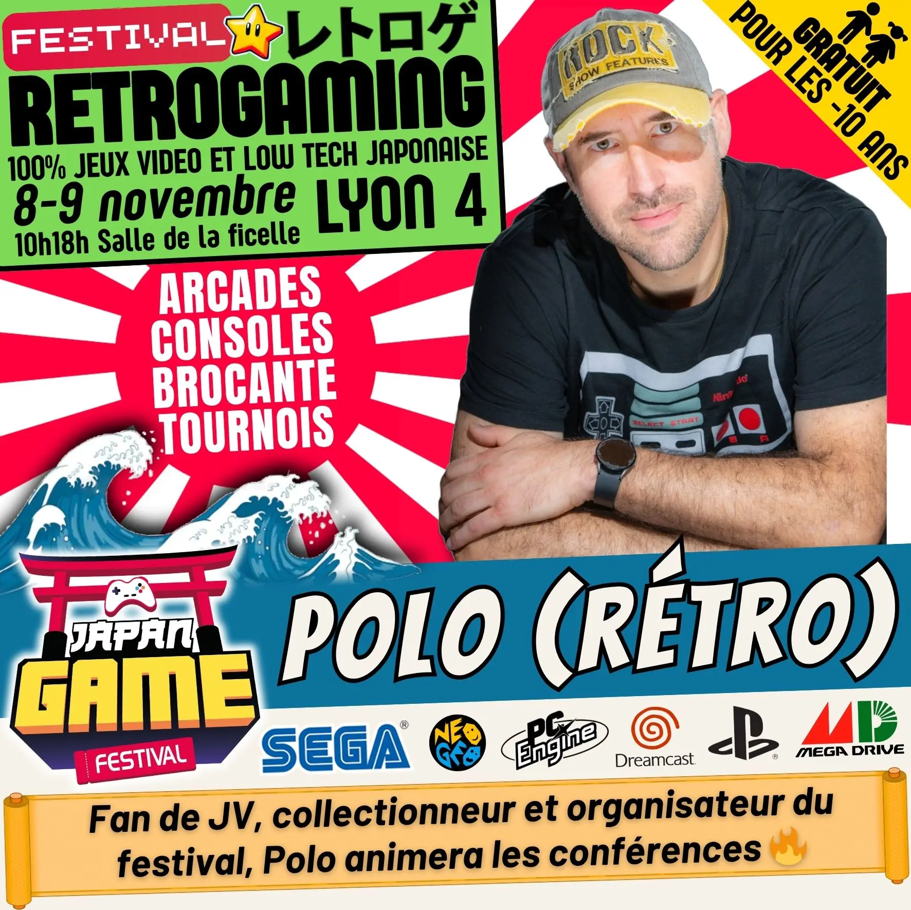 Samedi 10h - 18h // Dimanche 10h - 18h. salle de la ficelle (Lyon4)100% CONSOLE ET ARCADE JAP des 80'/90'/2000 "Entrez dans un véritable musée du jeu vidéo intégralement jouable !"