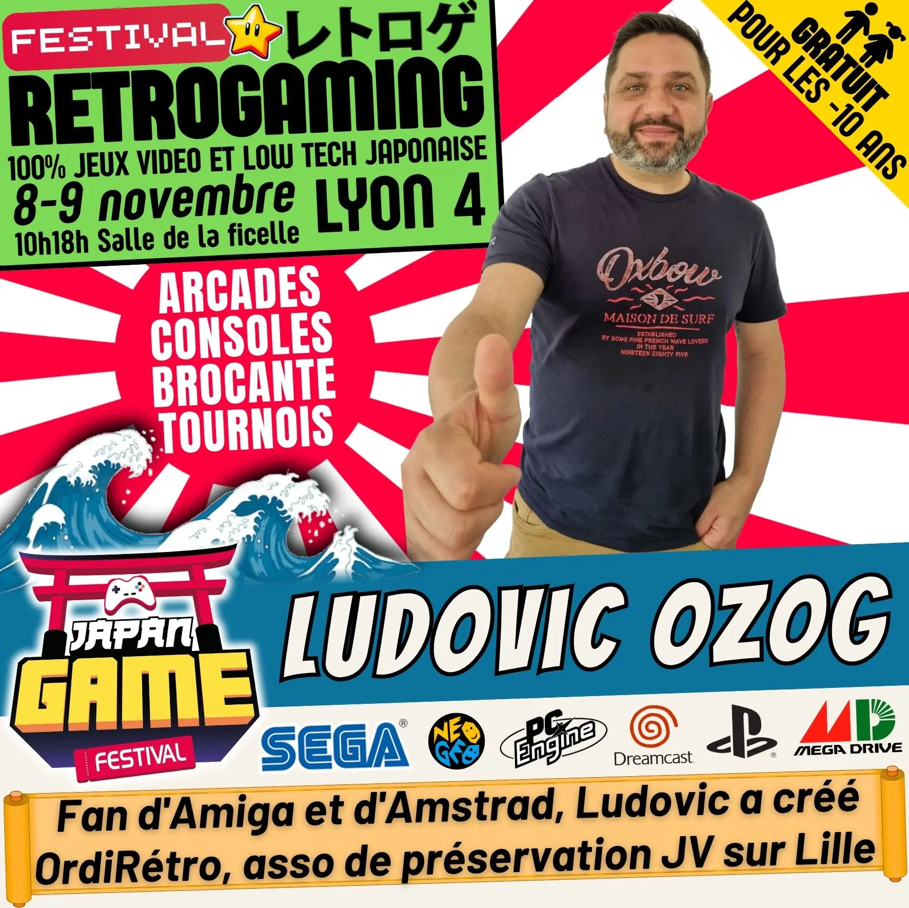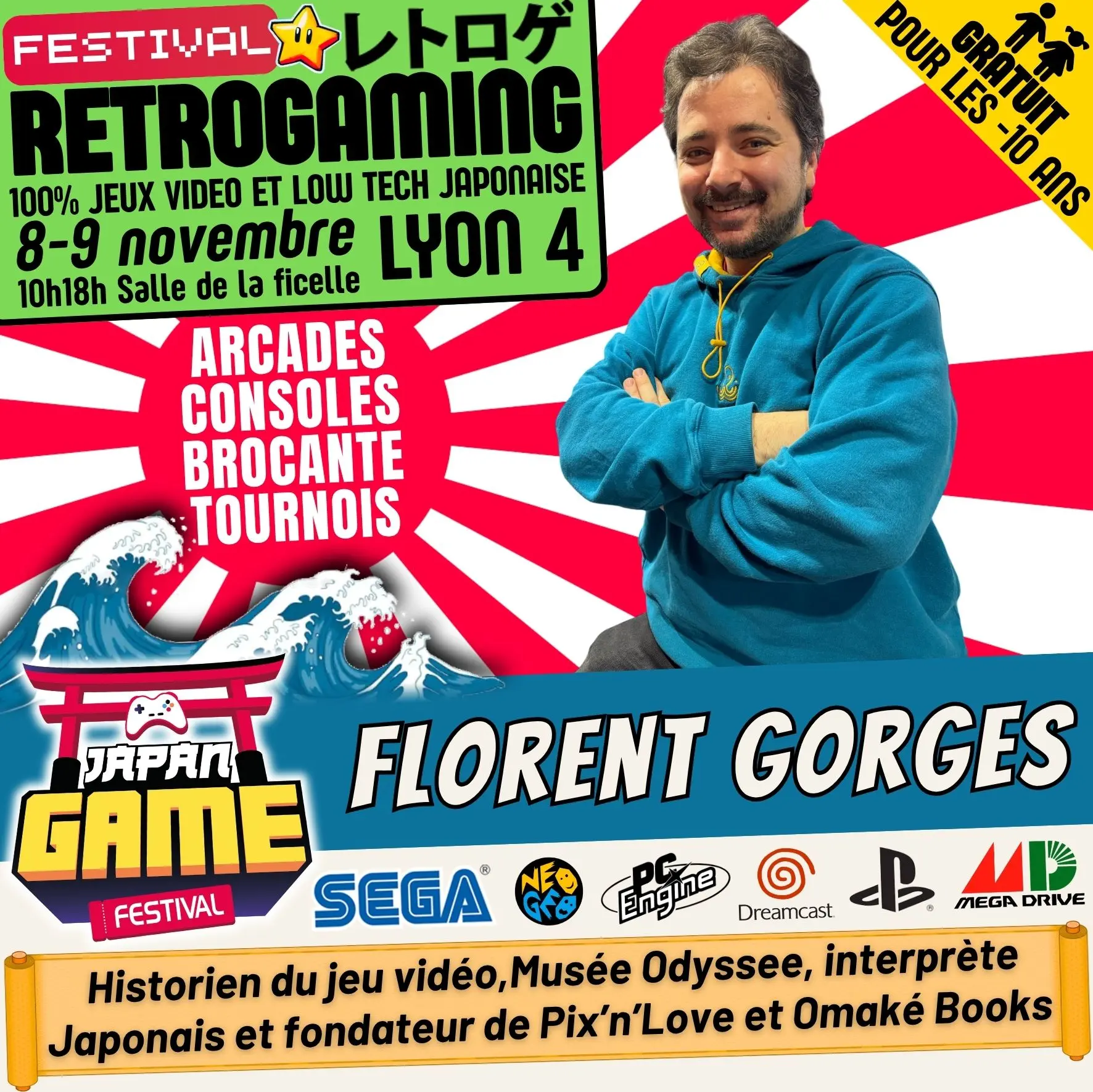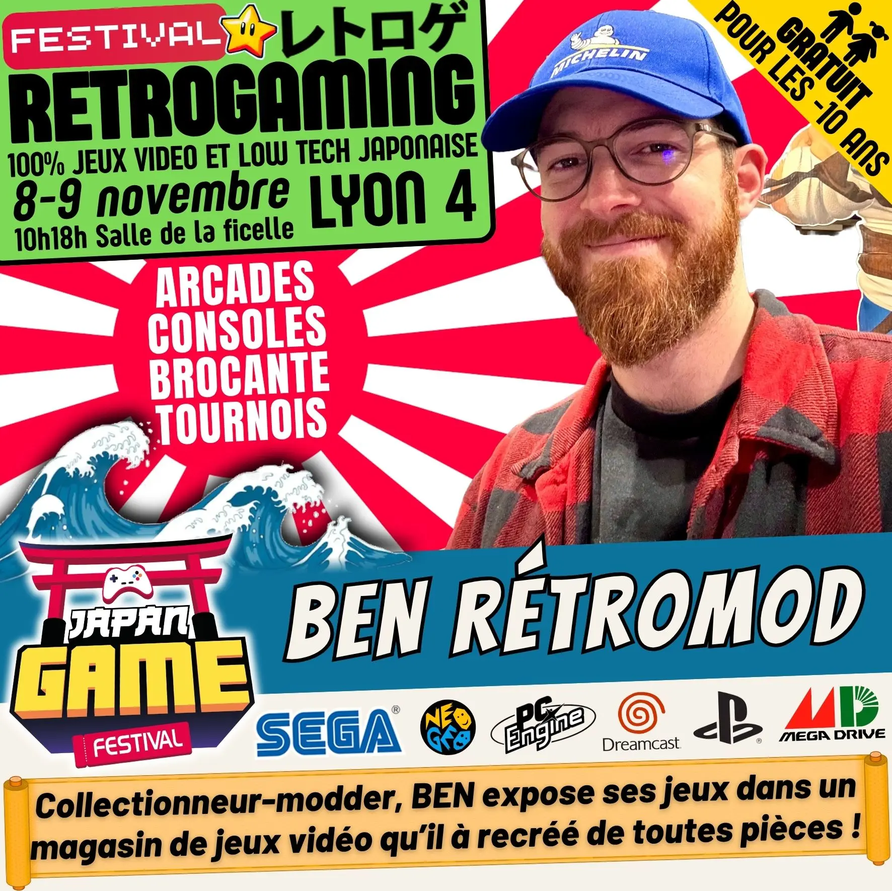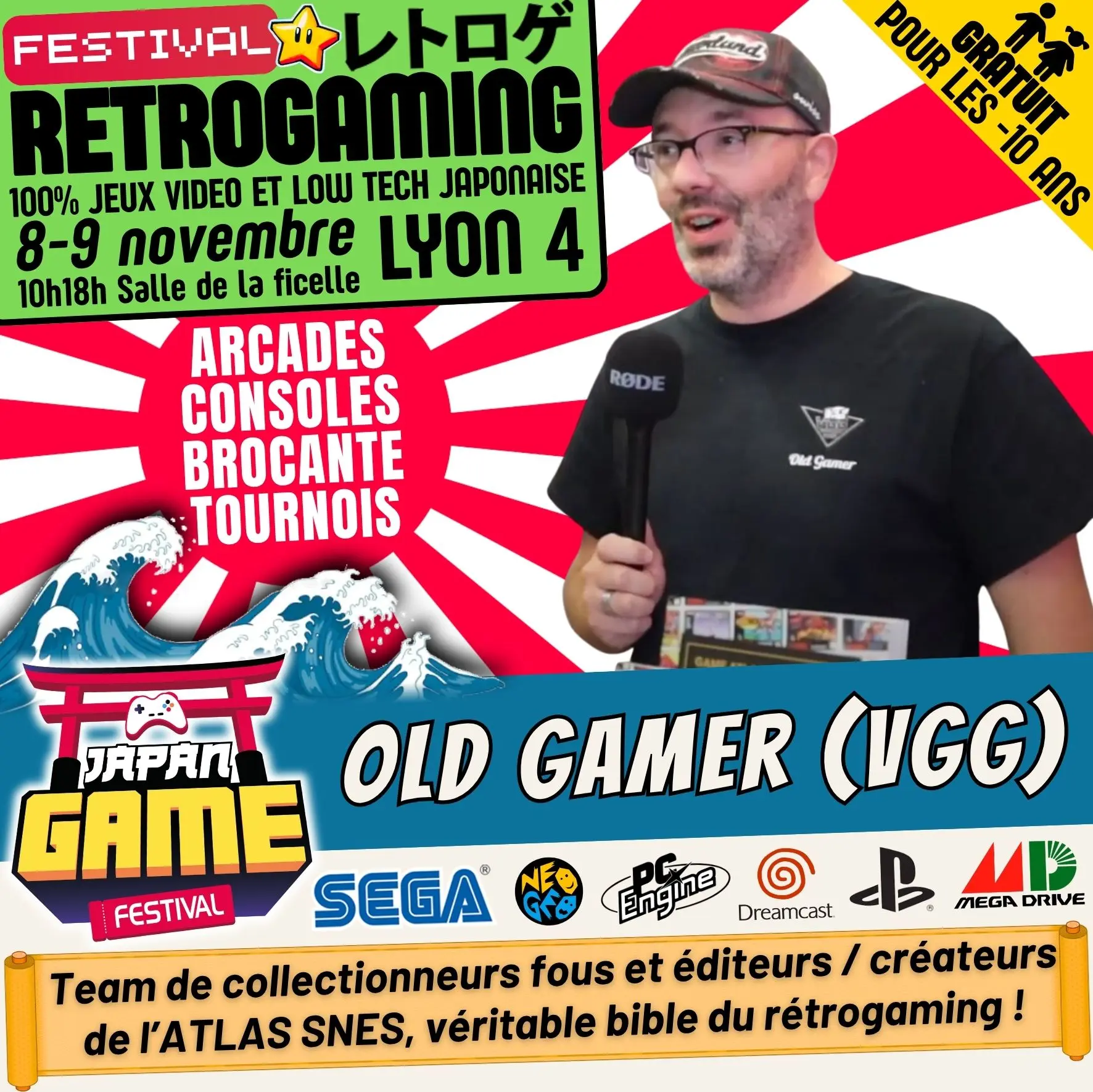 Samedi 10h - 18h // Dimanche 10h - 18h. salle de la ficelle (Lyon4)100% CONSOLE ET ARCADE JAP des 80'/90'/2000 "Entrez dans un véritable musée du jeu vidéo intégralement jouable !"