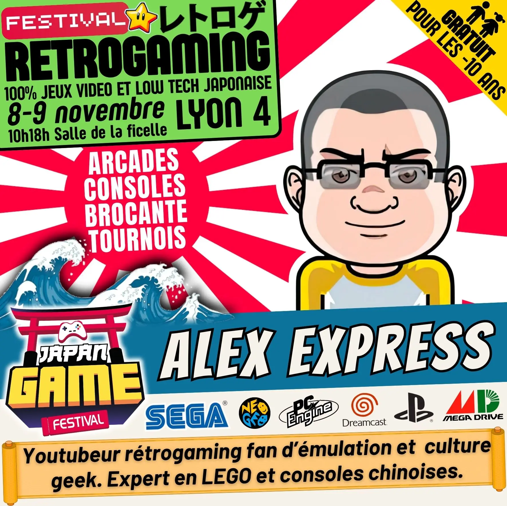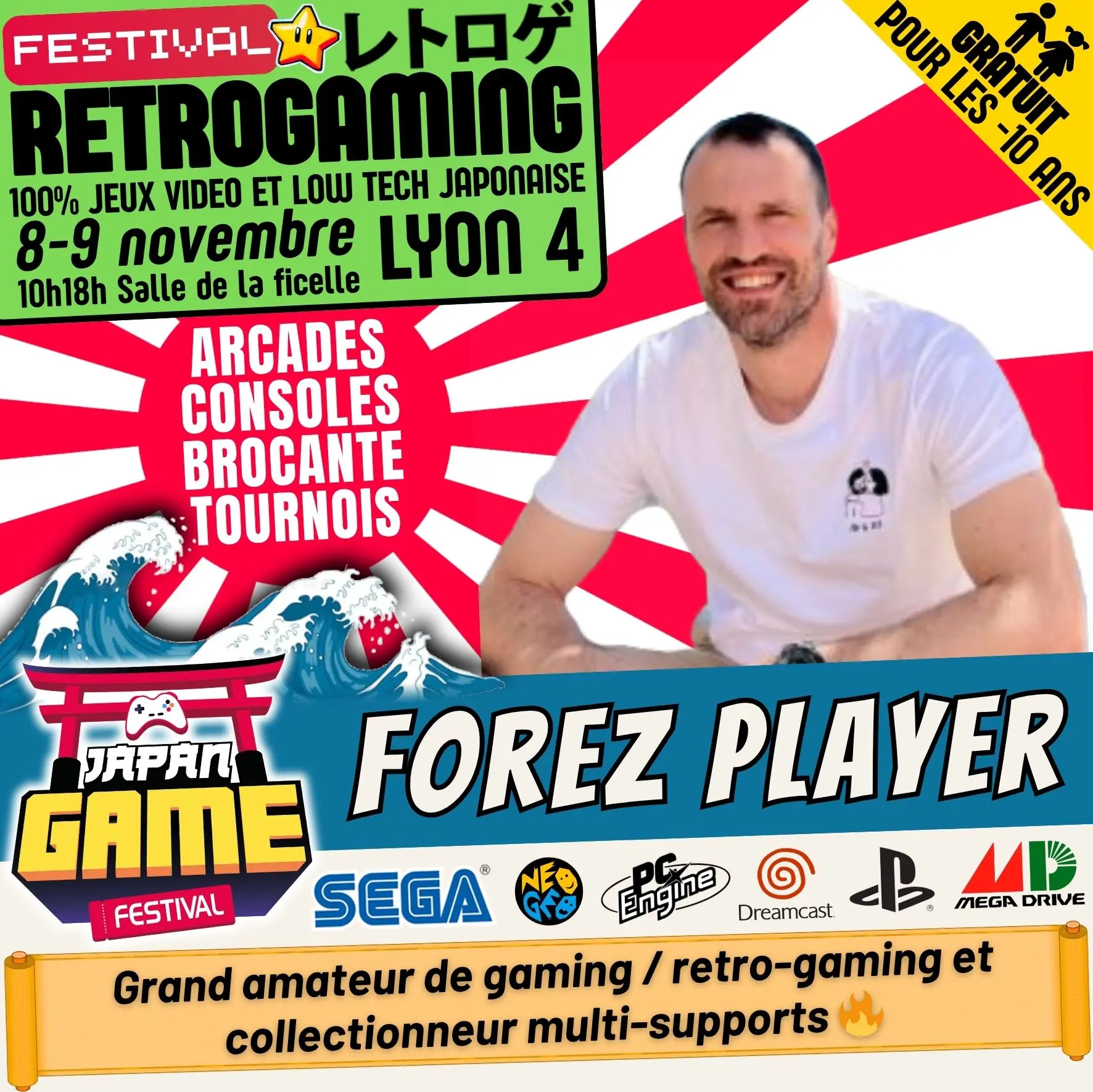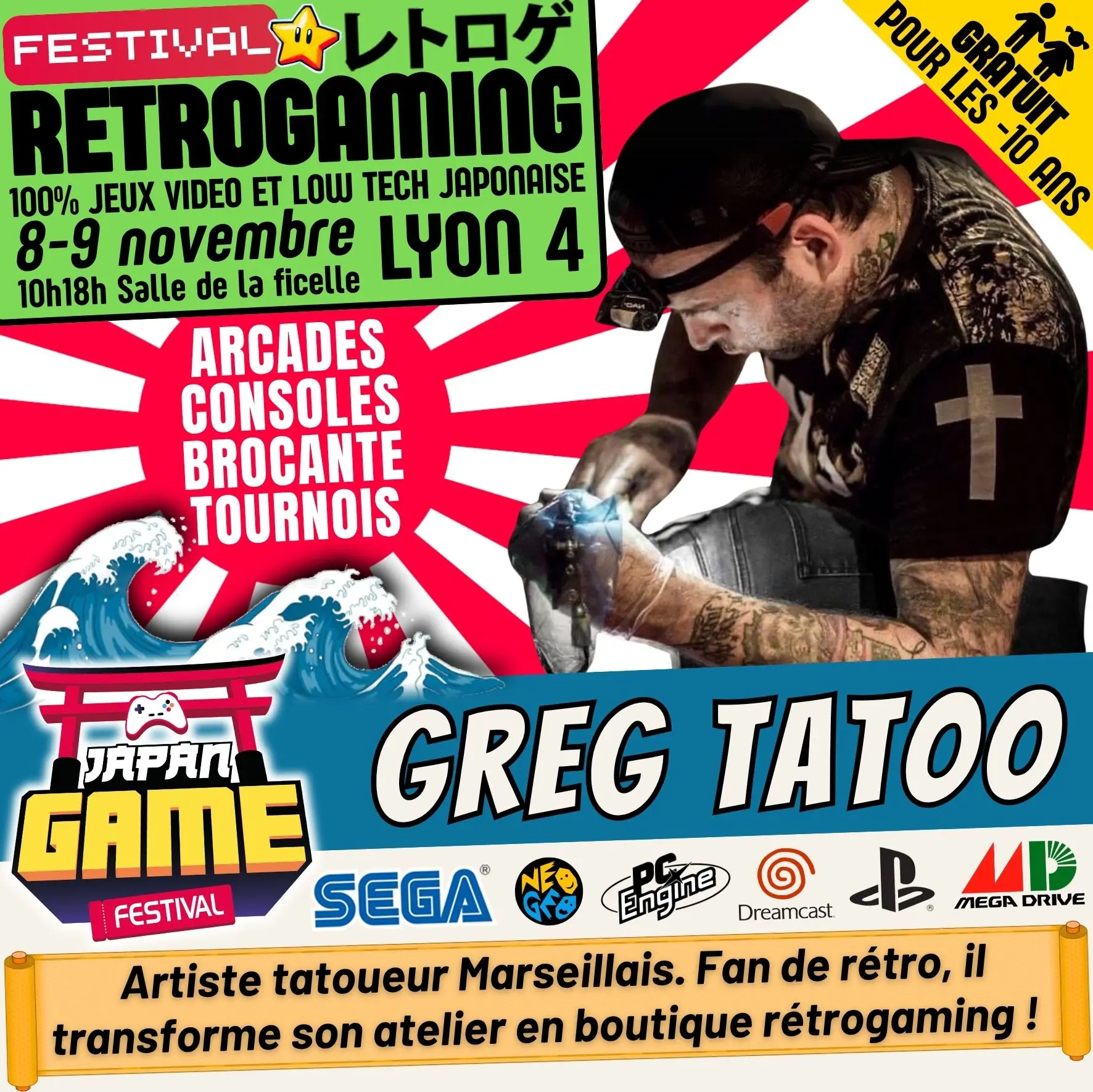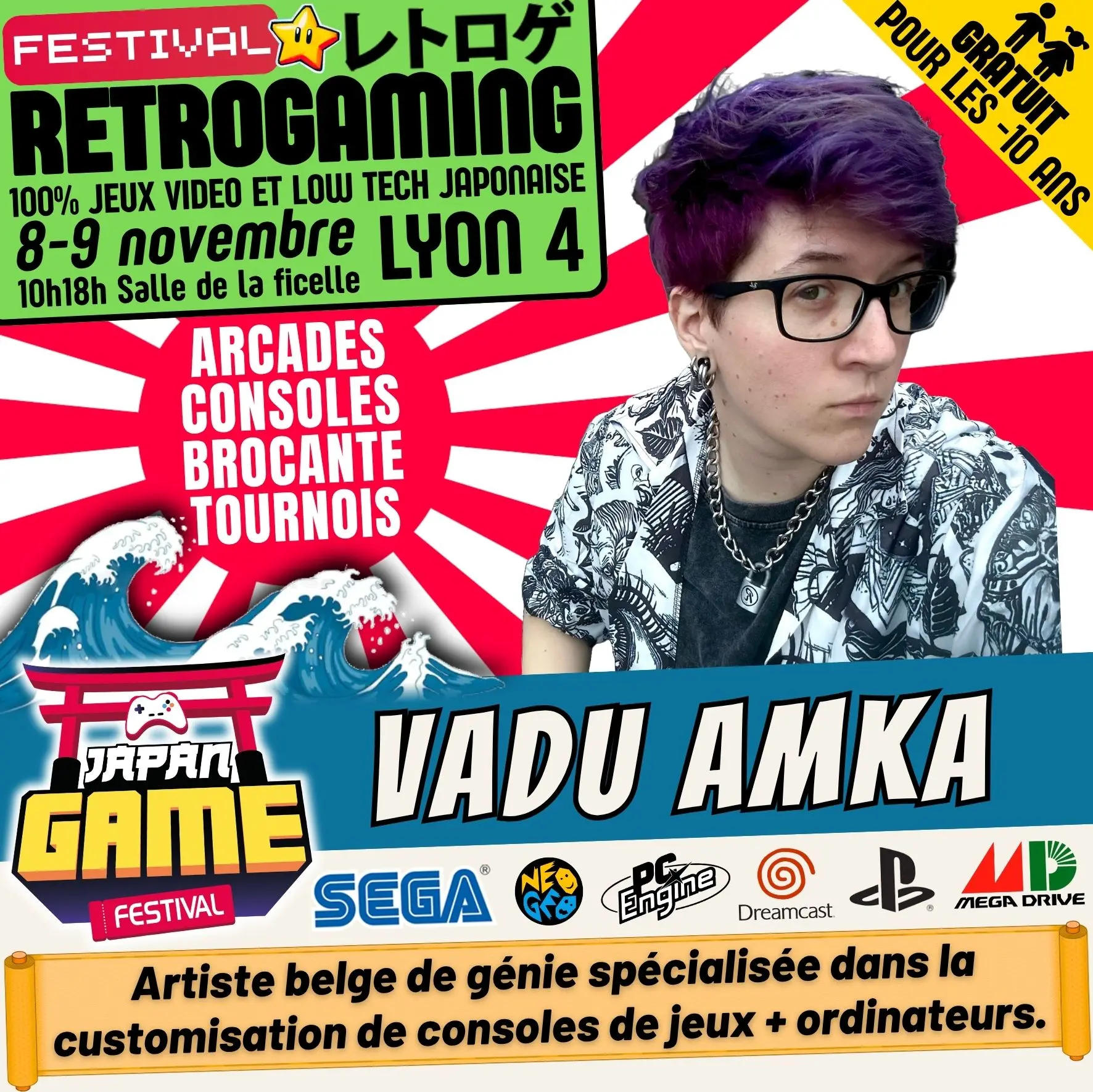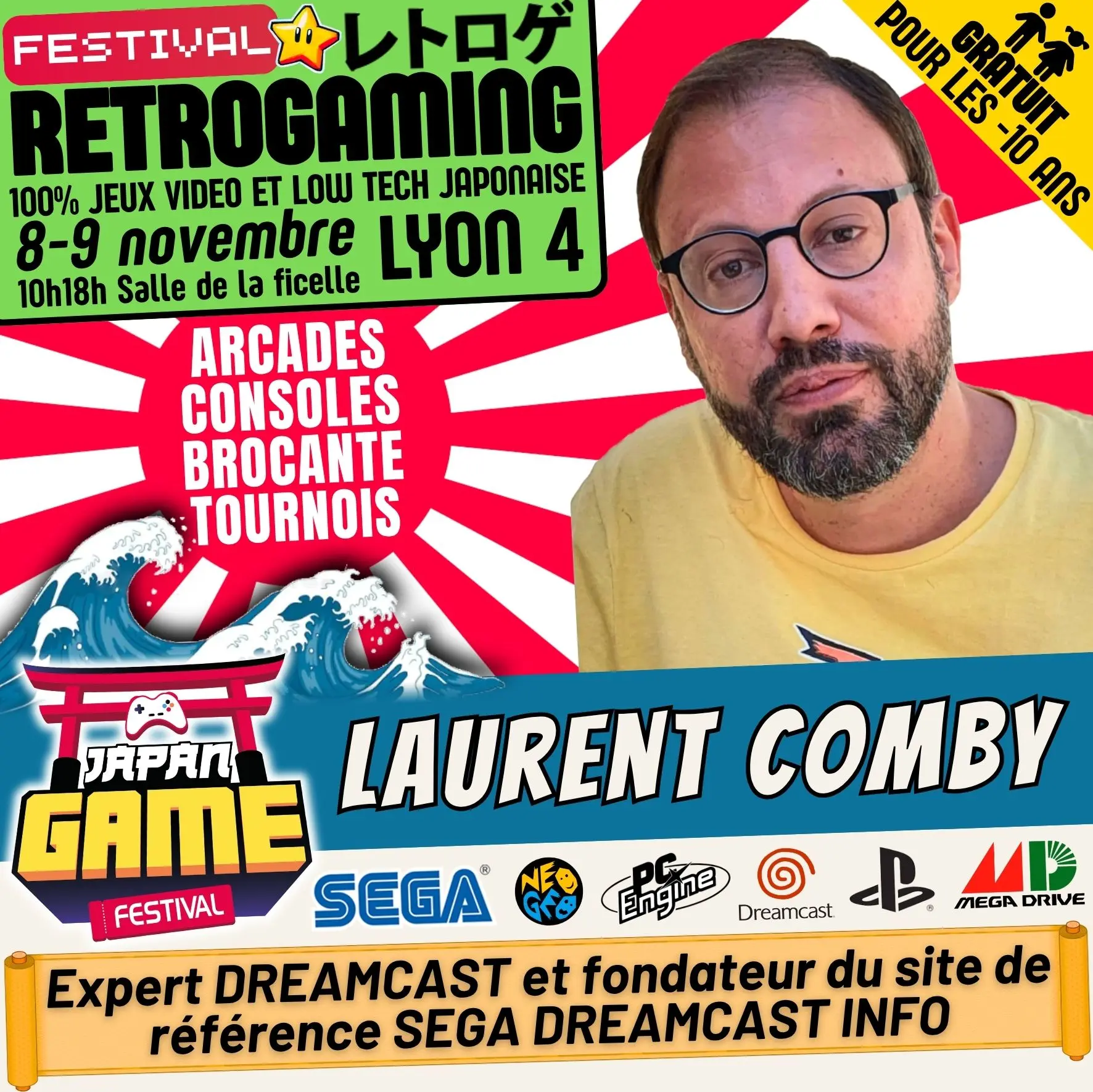 Samedi 10h - 18h // Dimanche 10h - 18h. salle de la ficelle (Lyon4)100% CONSOLE ET ARCADE JAP des 80'/90'/2000 "Entrez dans un véritable musée du jeu vidéo intégralement jouable !"