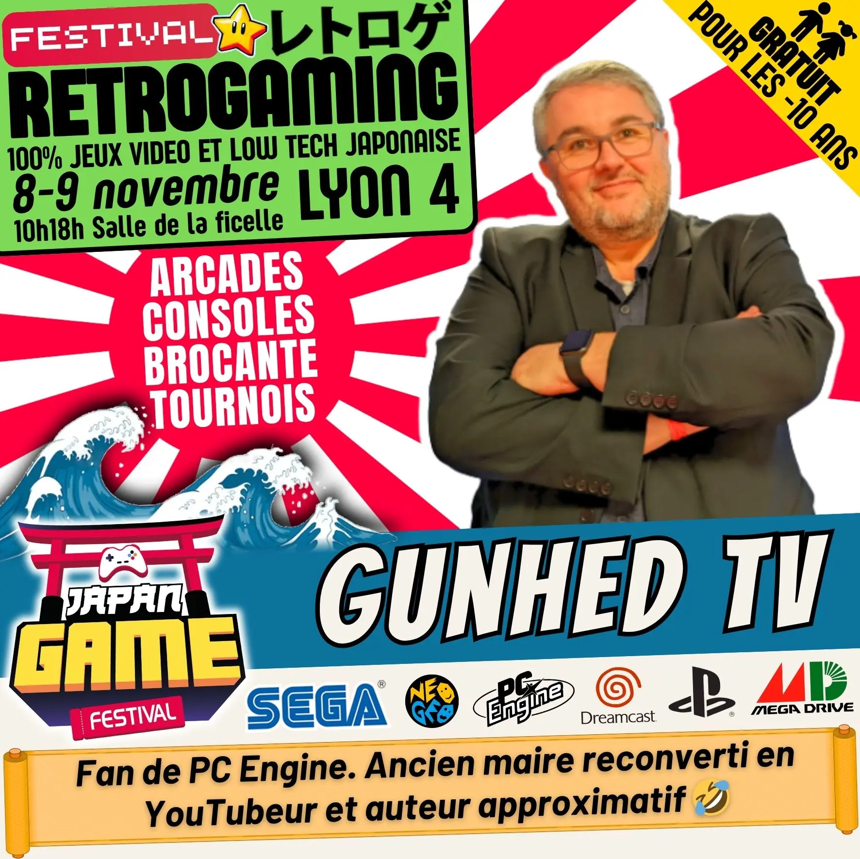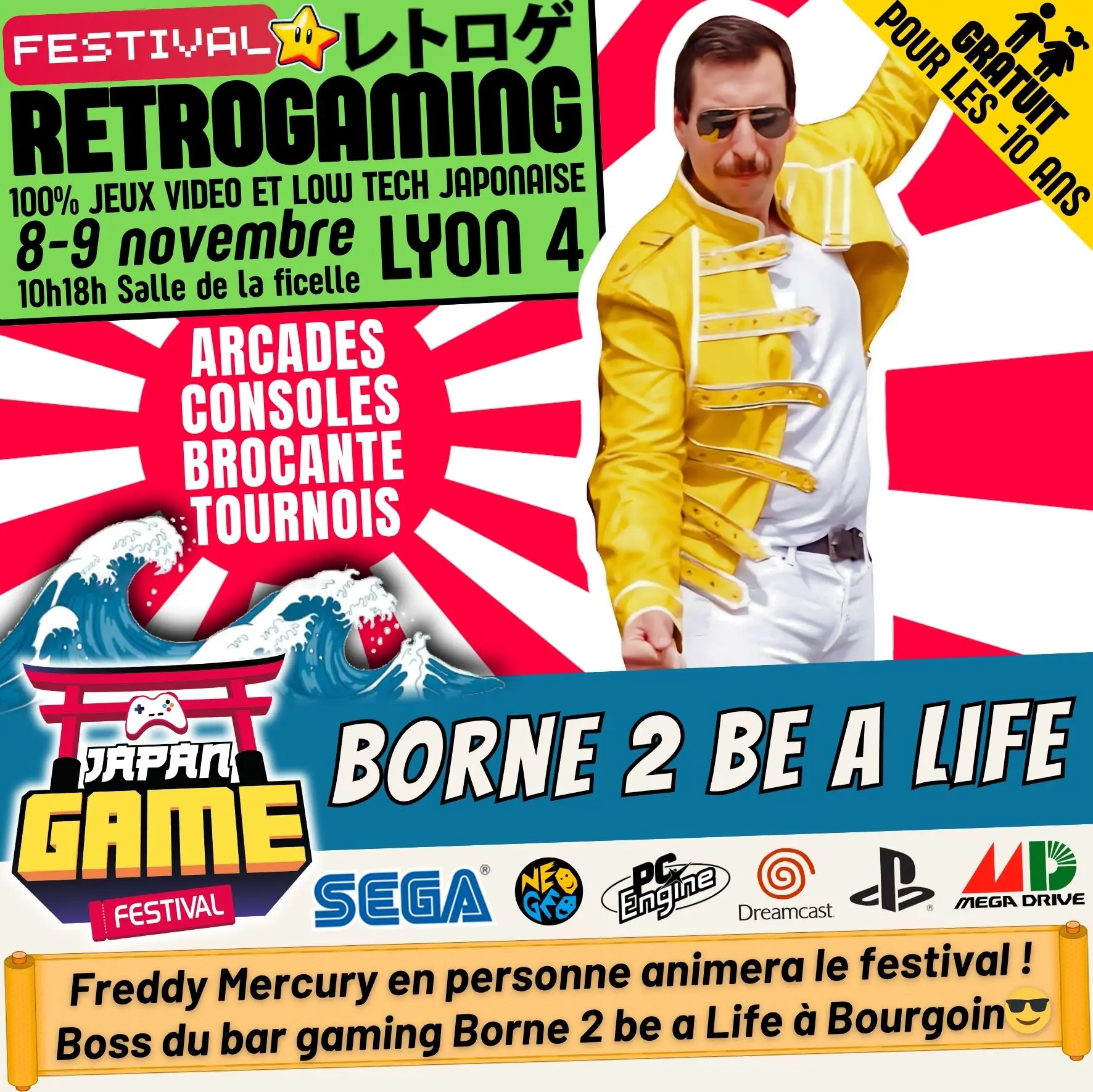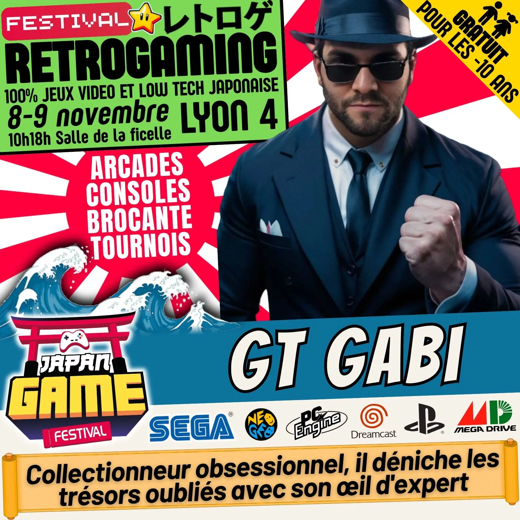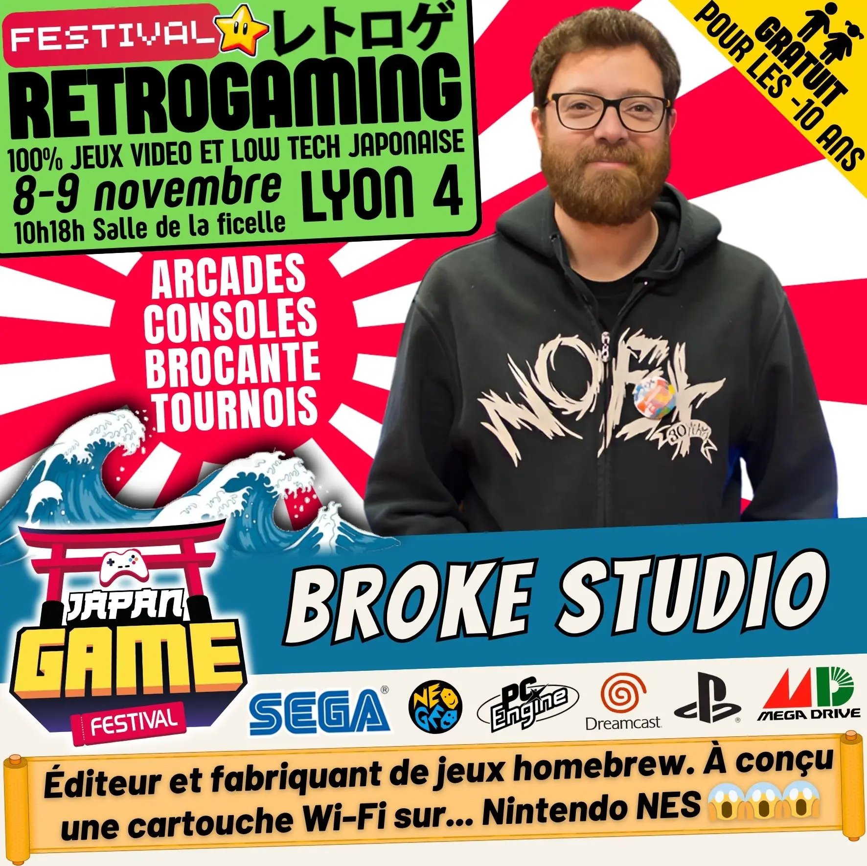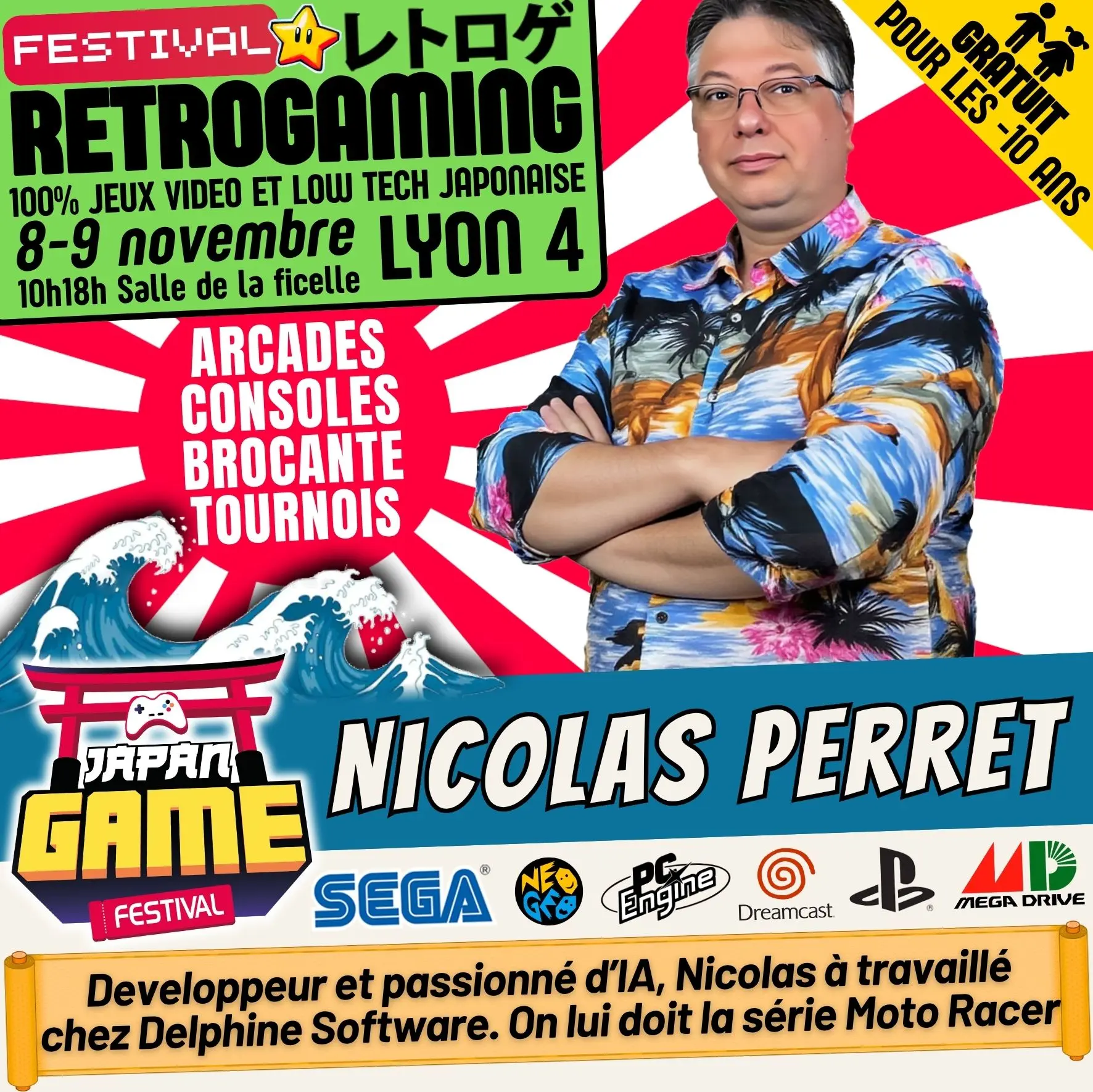 Samedi 10h - 18h // Dimanche 10h - 18h. salle de la ficelle (Lyon4)100% CONSOLE ET ARCADE JAP des 80'/90'/2000 "Entrez dans un véritable musée du jeu vidéo intégralement jouable !"